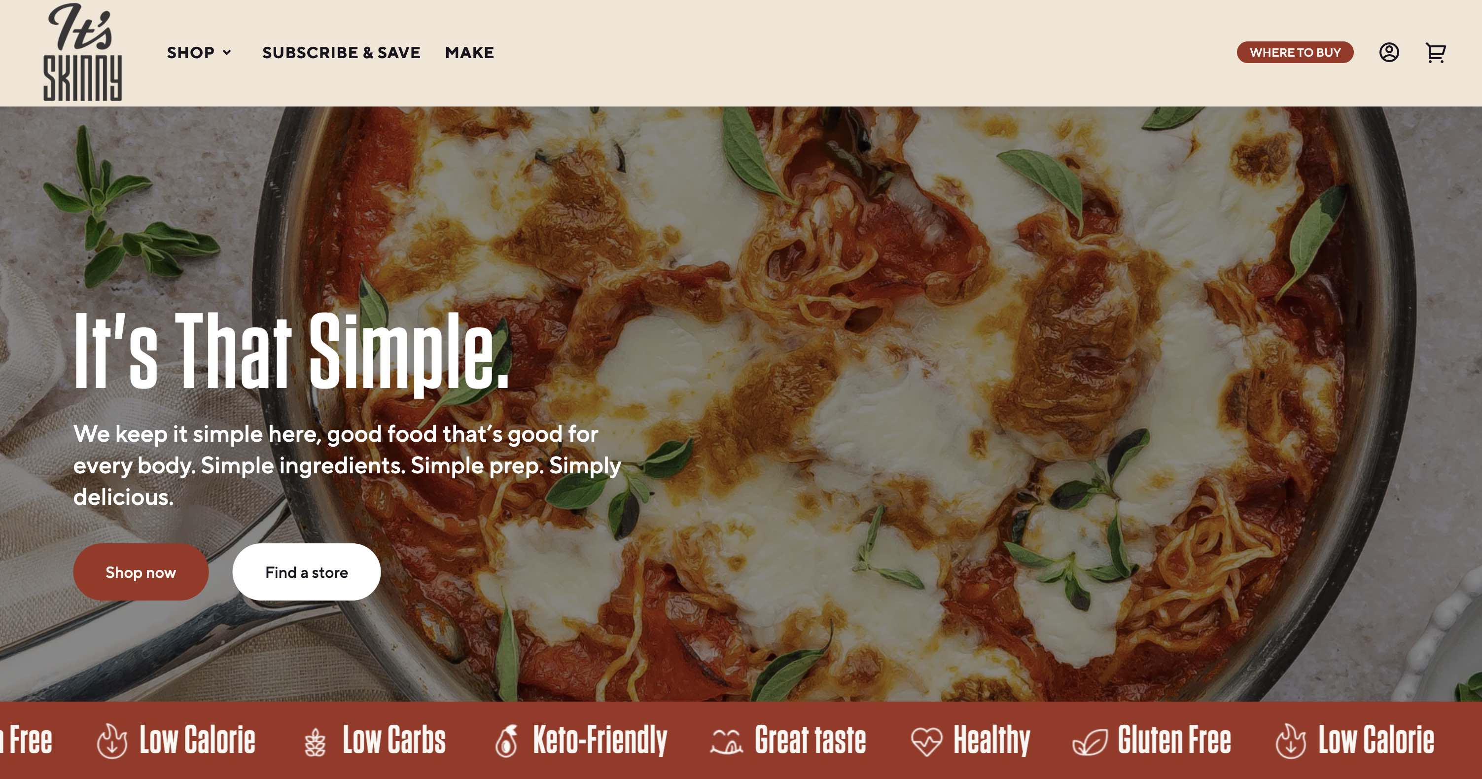 It’s Skinny is a lifestyle food brand redefining pasta by removing the guilt and keeping the joy. With bold flavors and a bold identity, the brand serves health-conscious eaters who want freedom and flavor without compromise. By challenging the category and leaning into fun, modern design and messaging, It’s Skinny makes better-for-you choices feel exciting, approachable, and mainstream.